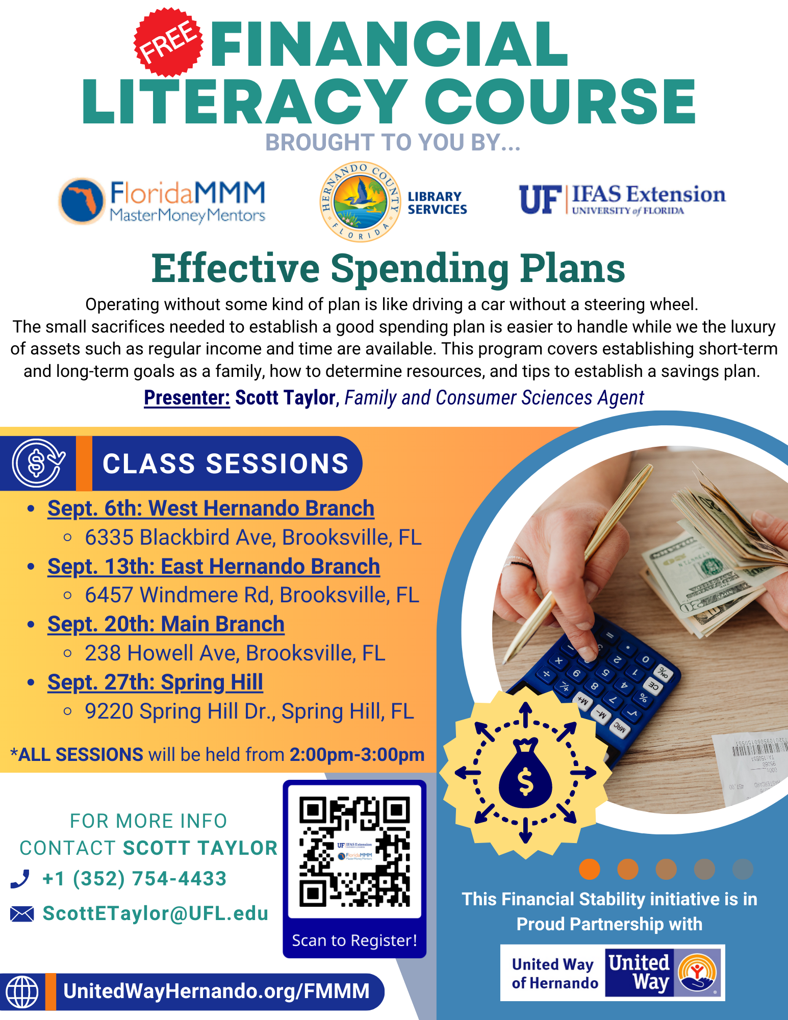 In partnership with Bank of America and with support from United Way of Hernando County, FMMM provides FREE financial support through local workshops on: